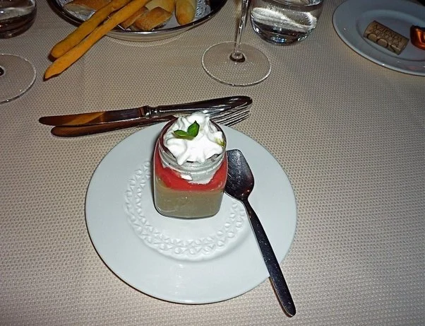 An EVOO-rich appetizer in Taormina a parfait of melanzane alla parmigana